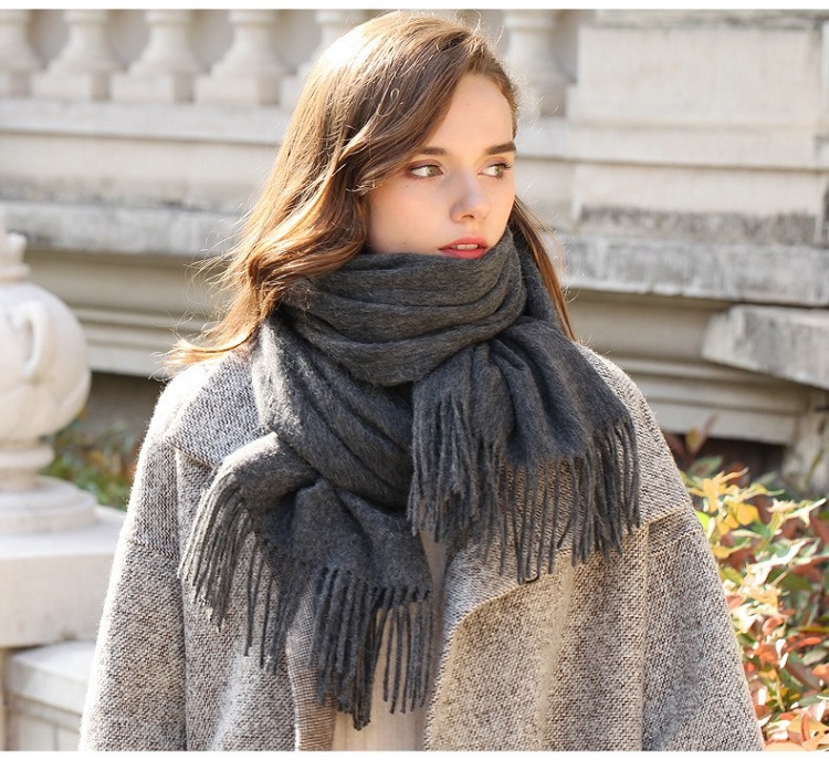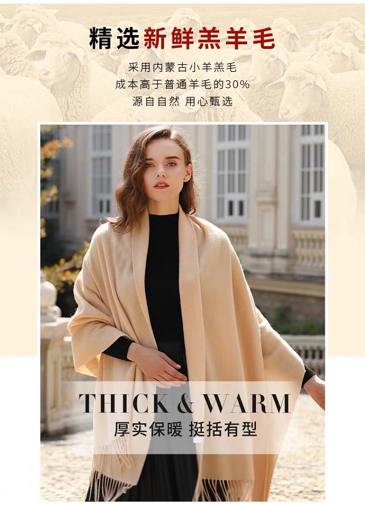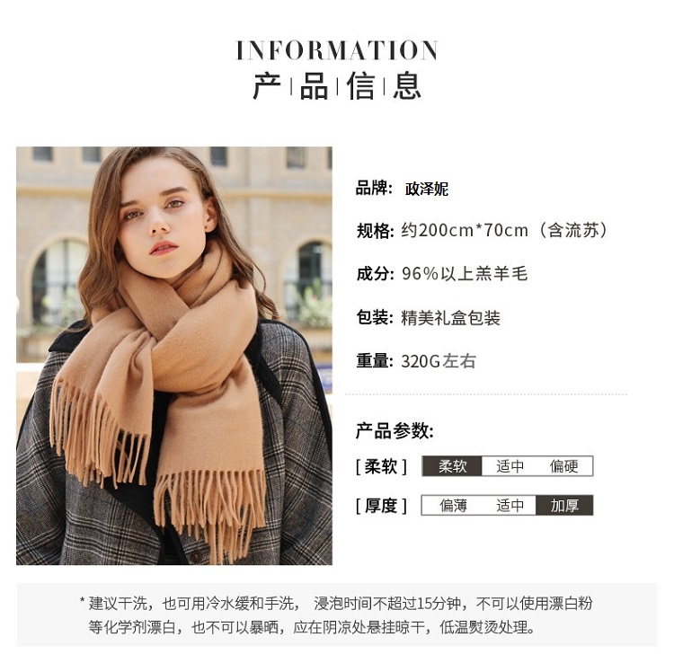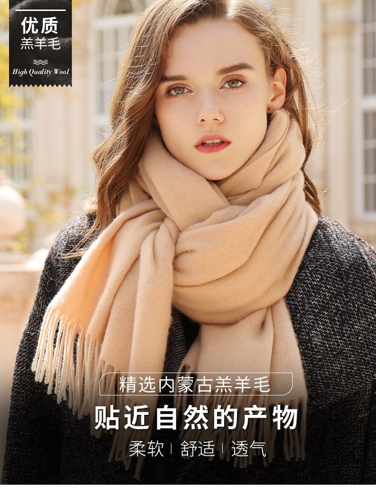 AF-201 政泽妮 女 秋冬季 纯色 加厚 围脖 长款 大披肩 两用 百搭 羊毛围巾
