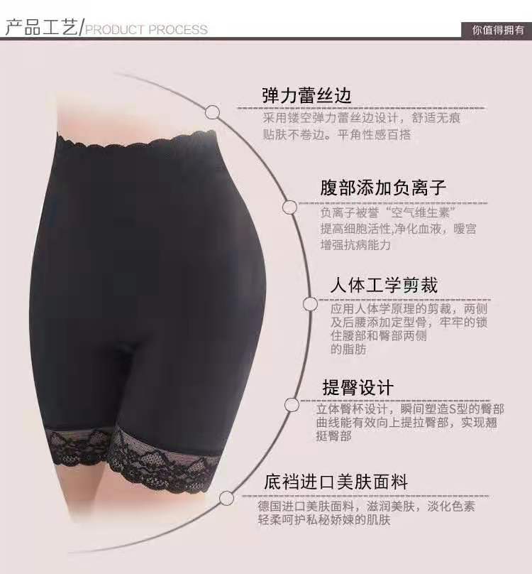 政泽妮 AA-2029 瘦瘦裤 平角 收腹提臀+内裤+安全裤三合一 咖啡因子面料 弹力蕾丝花边