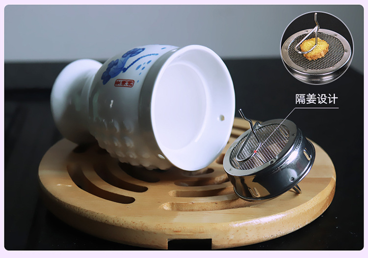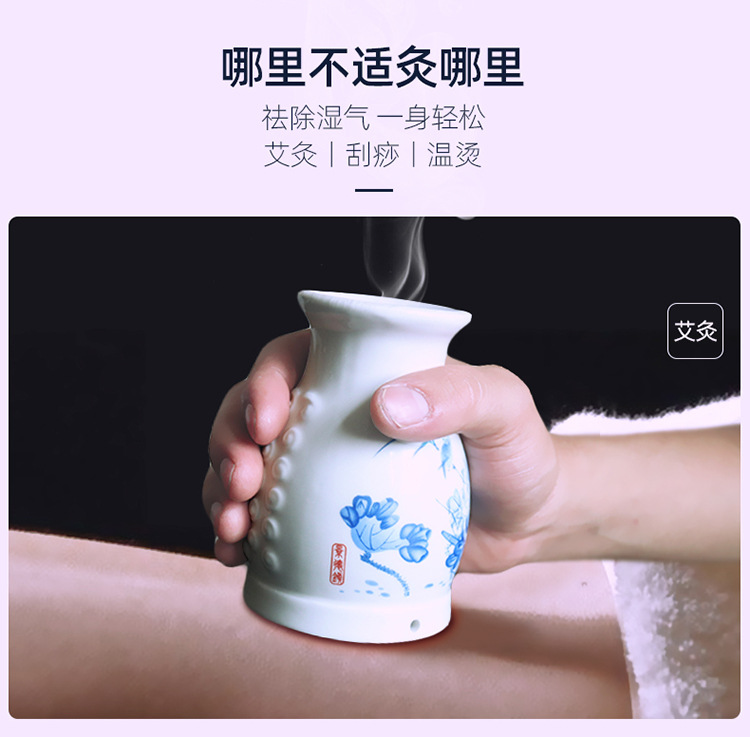 陶瓷艾灸杯刮痧按摩魔灸罐 艾灸温灸杯双层 美容院养生馆宫寒温灸器具