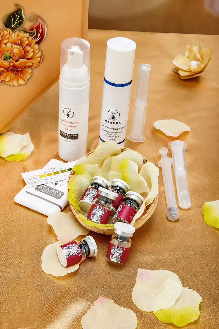 1、PH测试纸*2 ;2、季铵盐杀菌喷液20ML*2瓶; 3、季铵盐泡沫洗液80ML*1瓶;4、蚕丝蛋白按摩凝乳80ML*1瓶 ; 5、紧致凝胶3.3g*10支 ; 6 内雕冻干粉3组 7. 一次性针剂(辅助冻干粉)