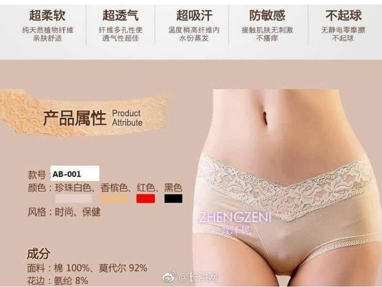 AB-001 政泽妮 兰精 莫代尔 内裤 性感蕾丝 V腰 磁疗石 保健 柔棉 内裤