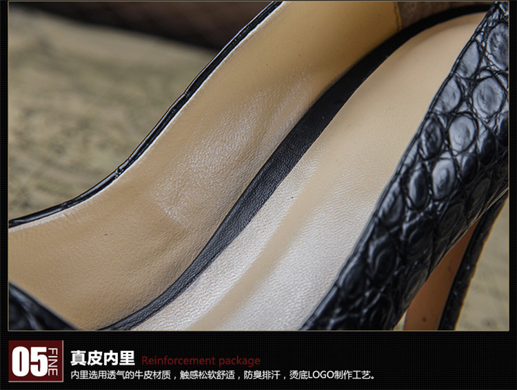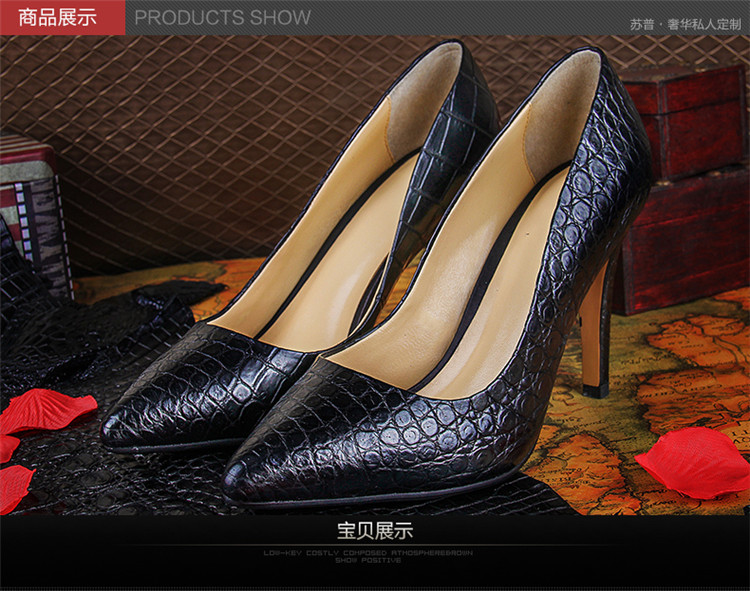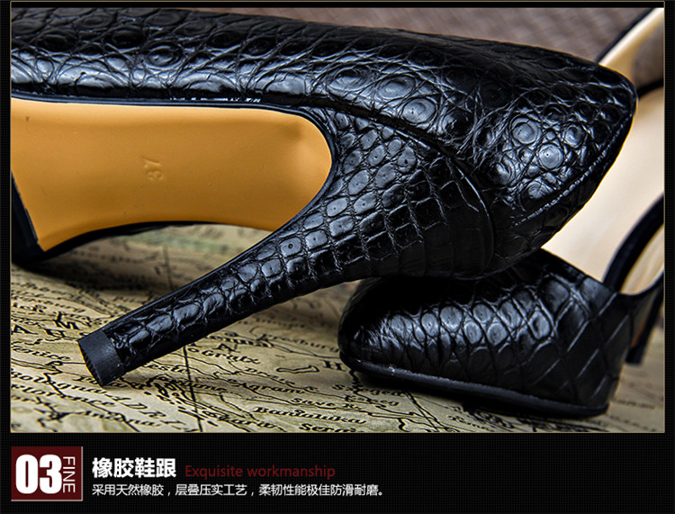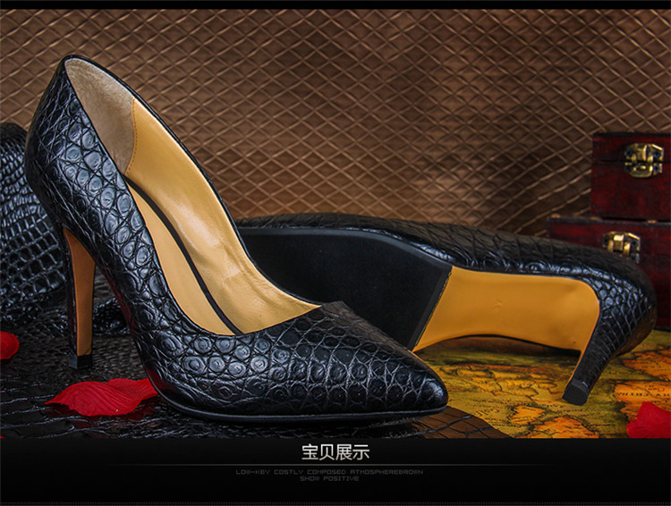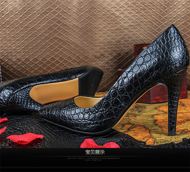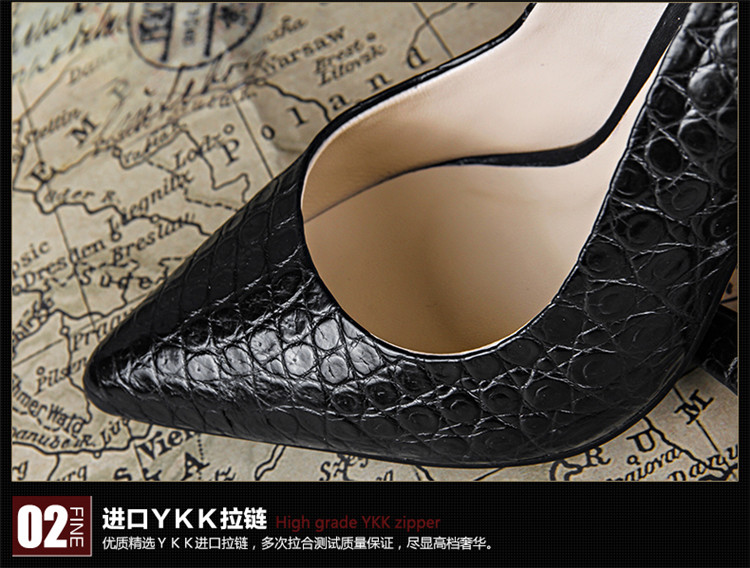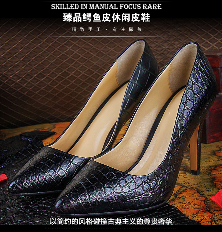 F-B-1102 政泽妮女款 鳄鱼皮正装休闲高跟鞋高档鞋真皮皮鞋