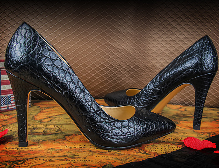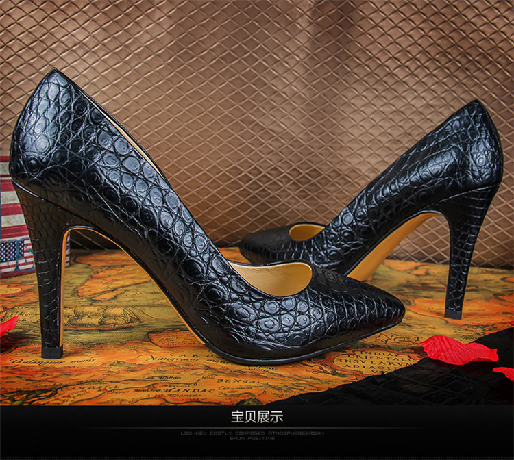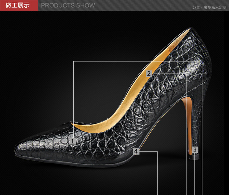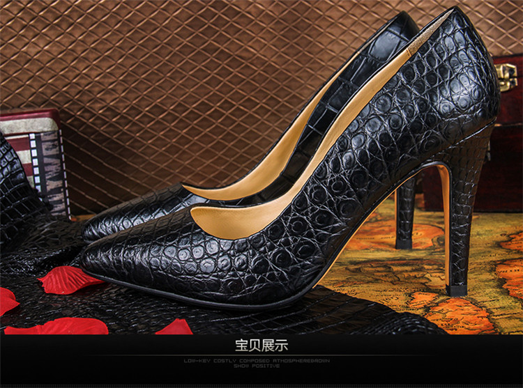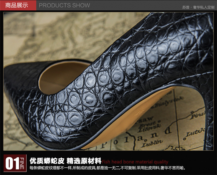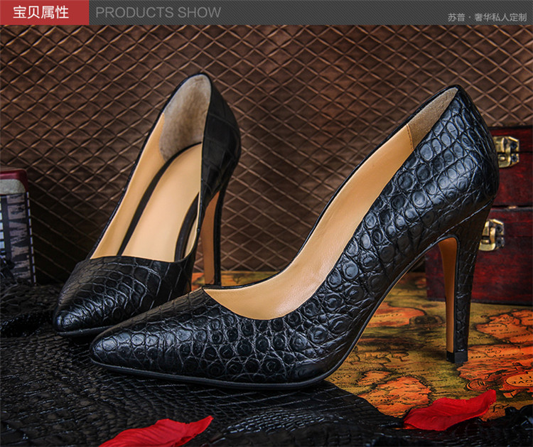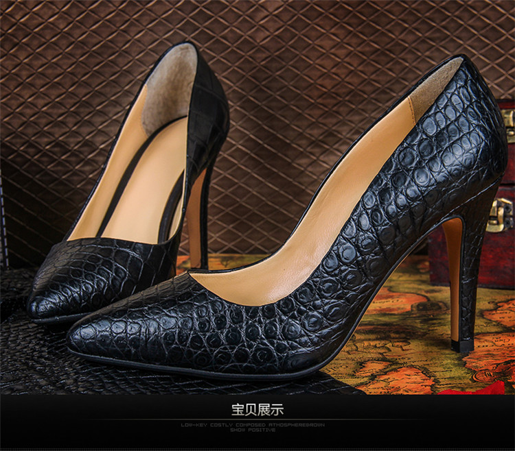F-B-1102 政泽妮女款 鳄鱼皮正装休闲高跟鞋高档鞋真皮皮鞋