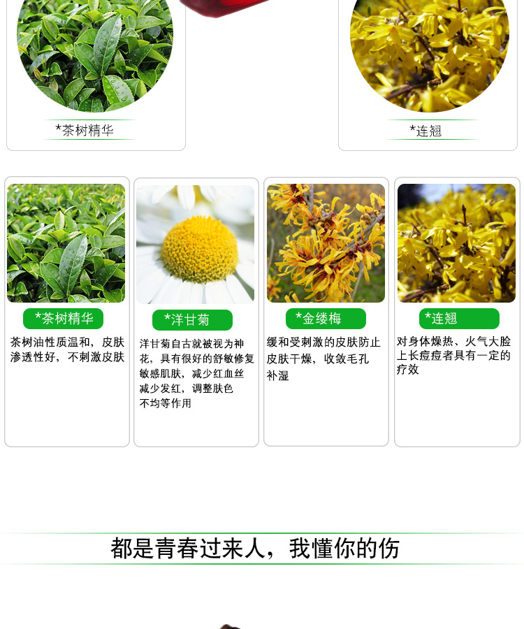 护肤效果:抑制皮质分泌、消炎清痘、消螨杀菌
