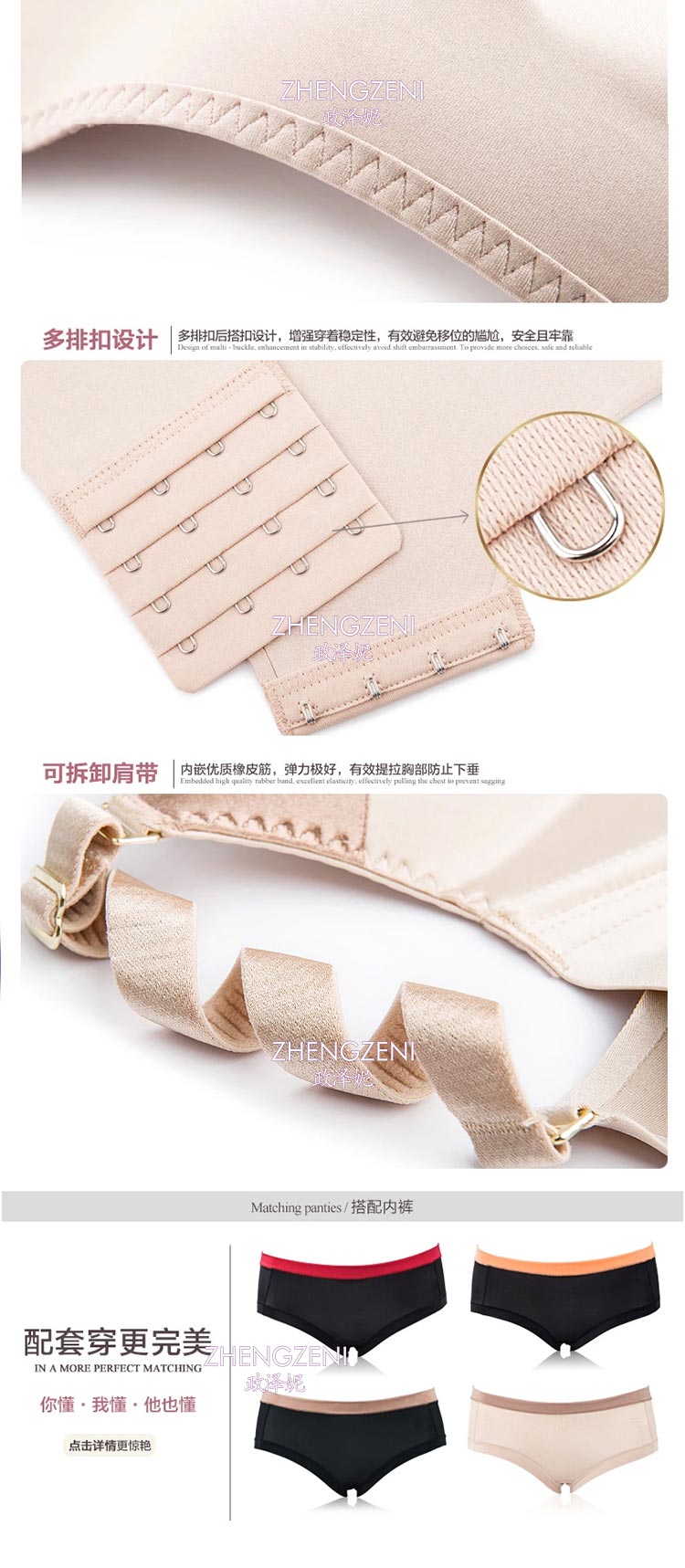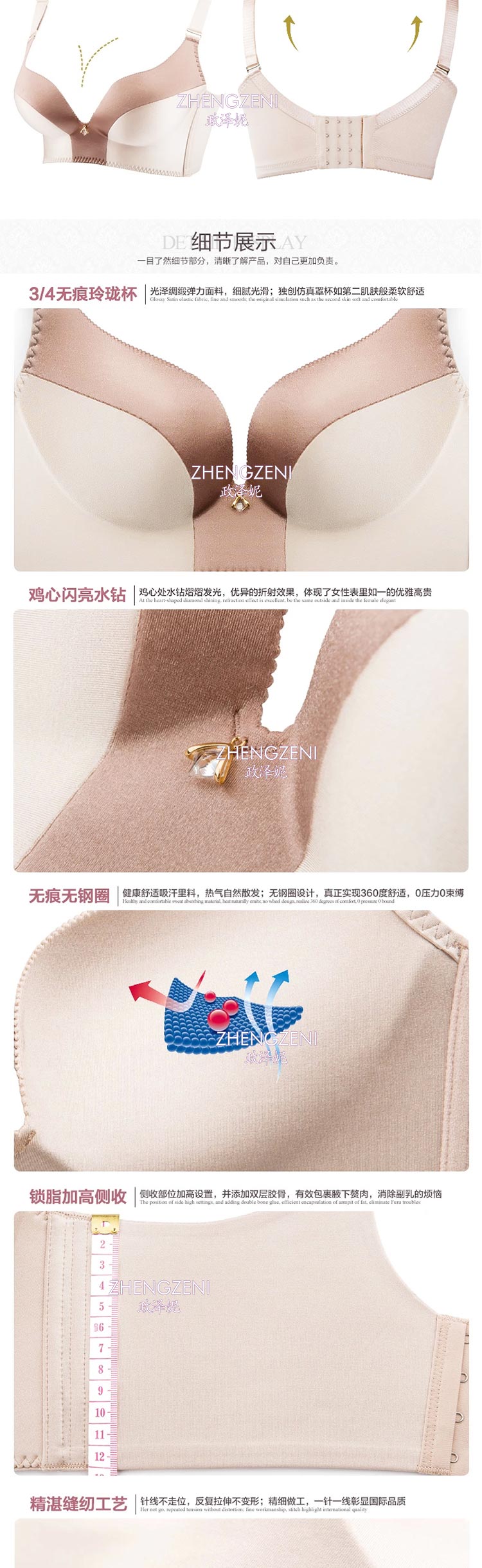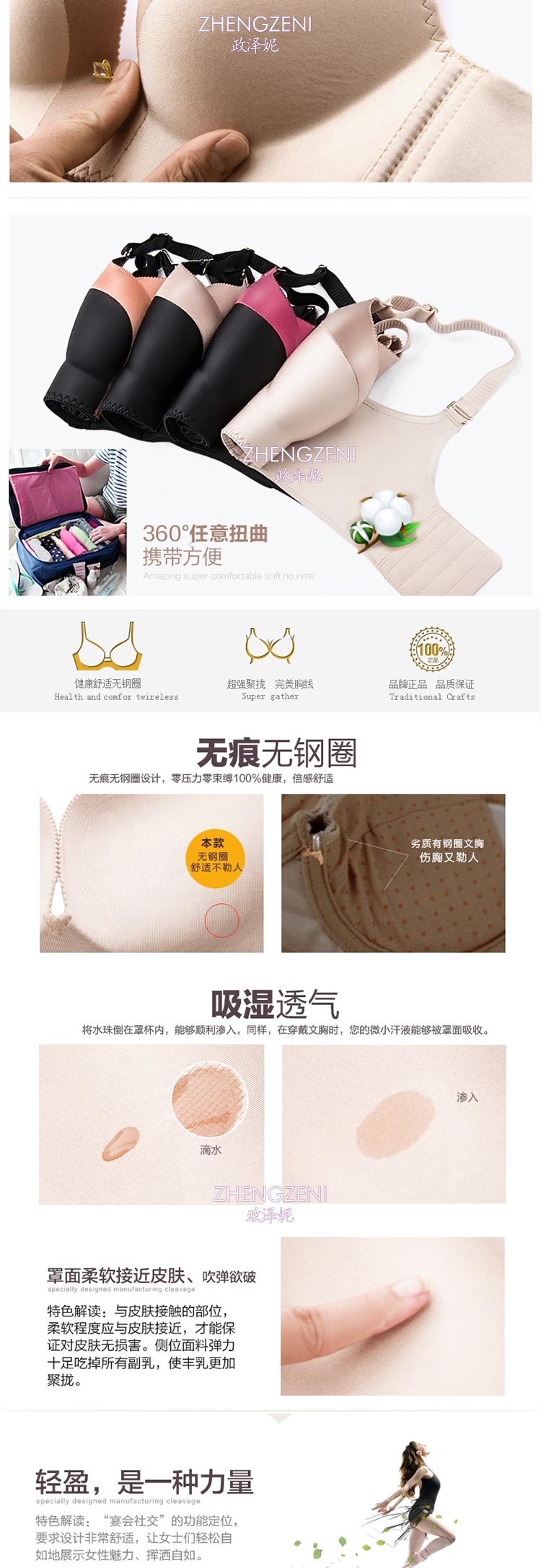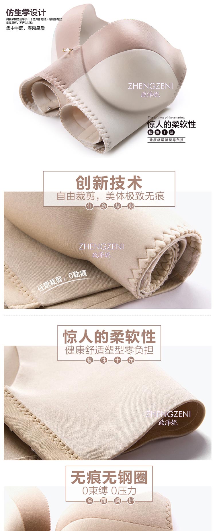AA-302  政泽妮 无钢圈 一片式 光面无痕 上薄下厚  性感深V 舒适 聚拢调整型 文胸 套装