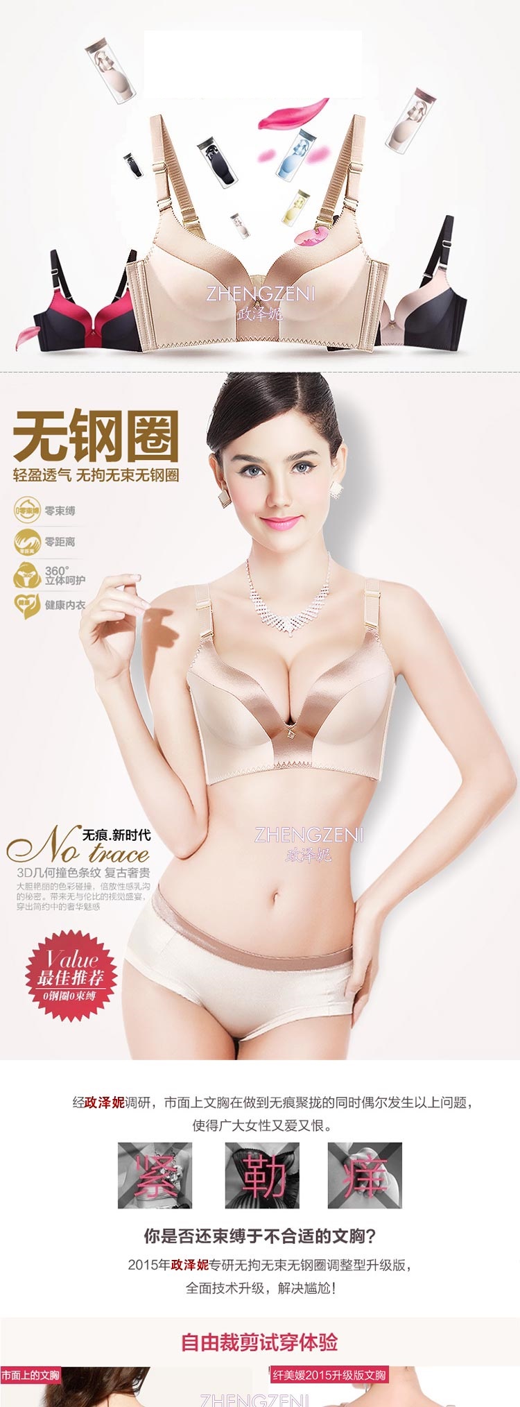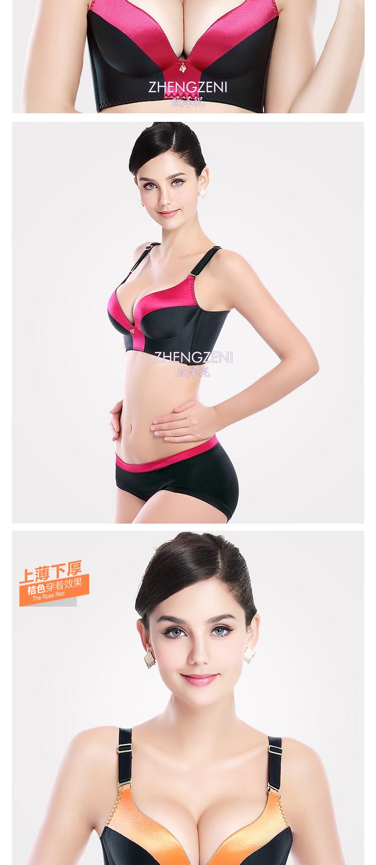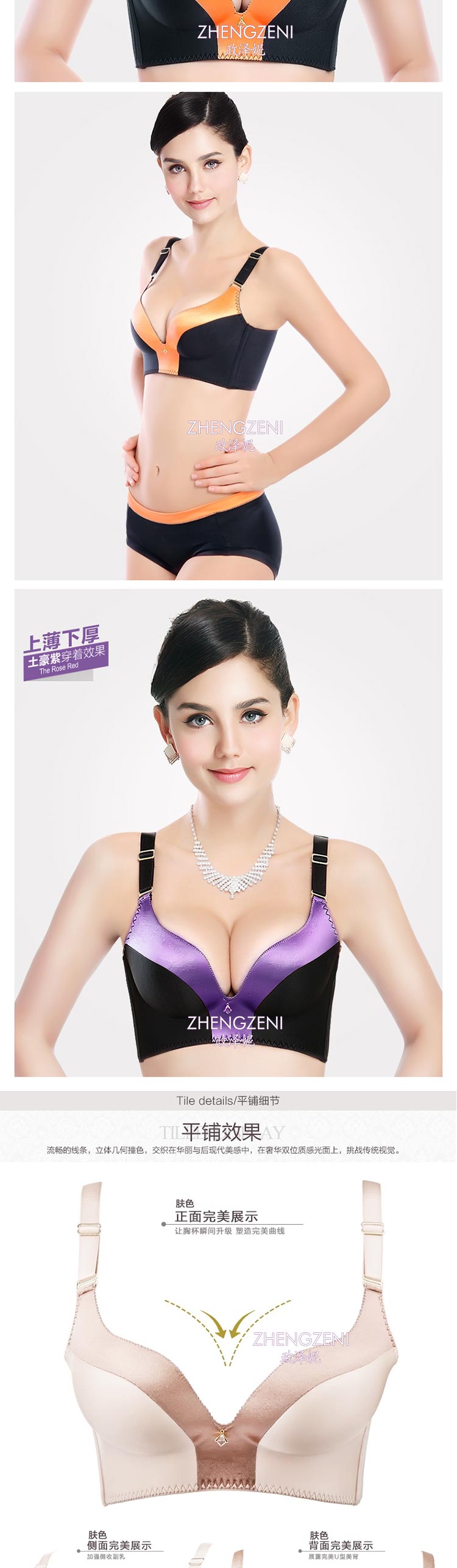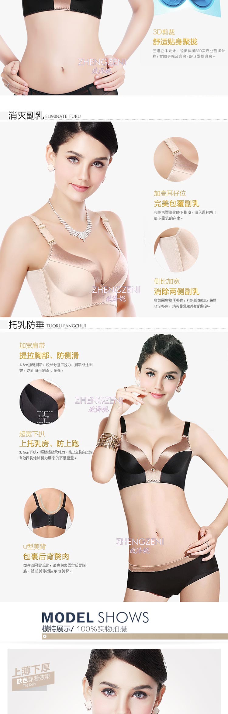 AA-302  政泽妮 无钢圈 一片式 光面无痕 上薄下厚  性感深V 舒适 聚拢调整型 文胸 套装