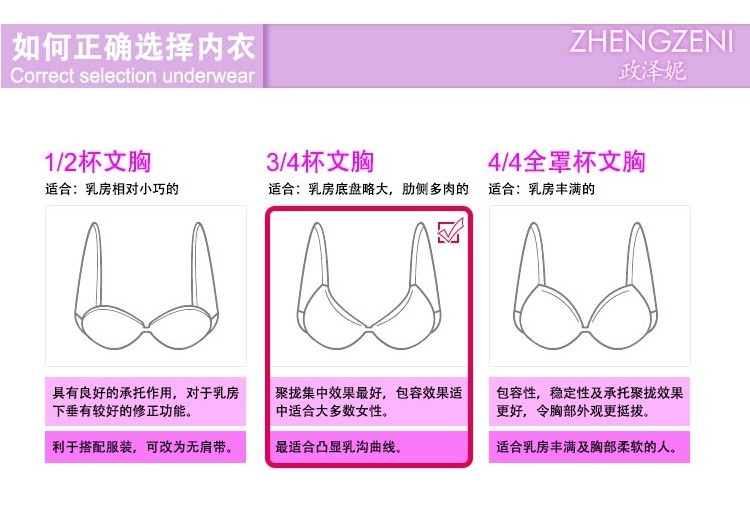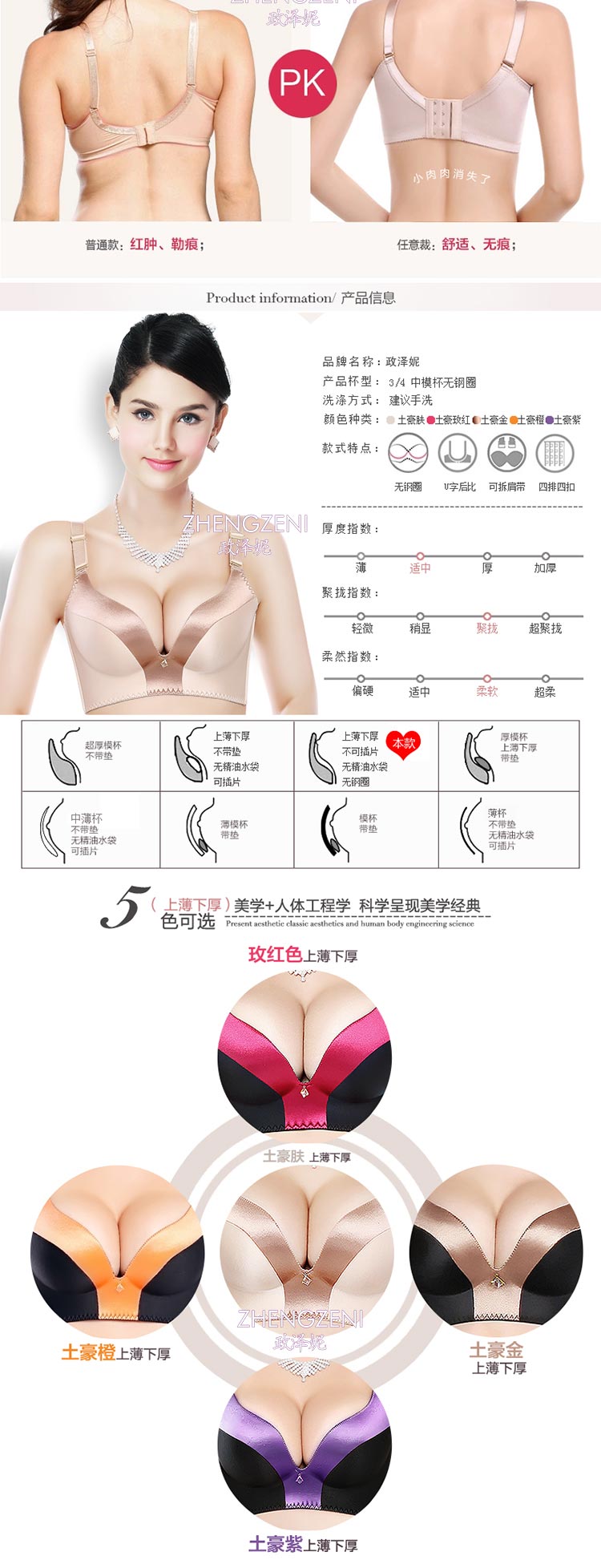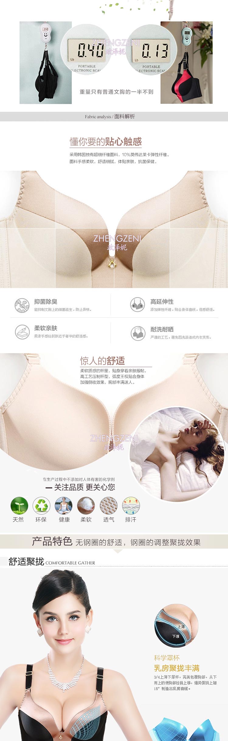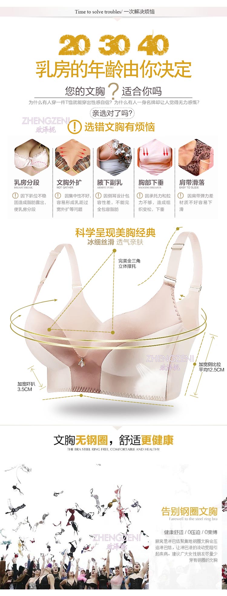 AA-302  政泽妮 无钢圈 一片式 光面无痕 上薄下厚  性感深V 舒适 聚拢调整型 文胸 套装